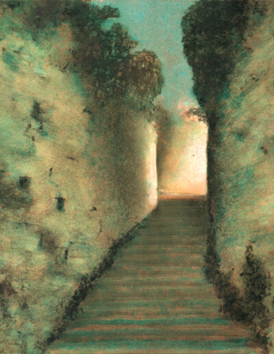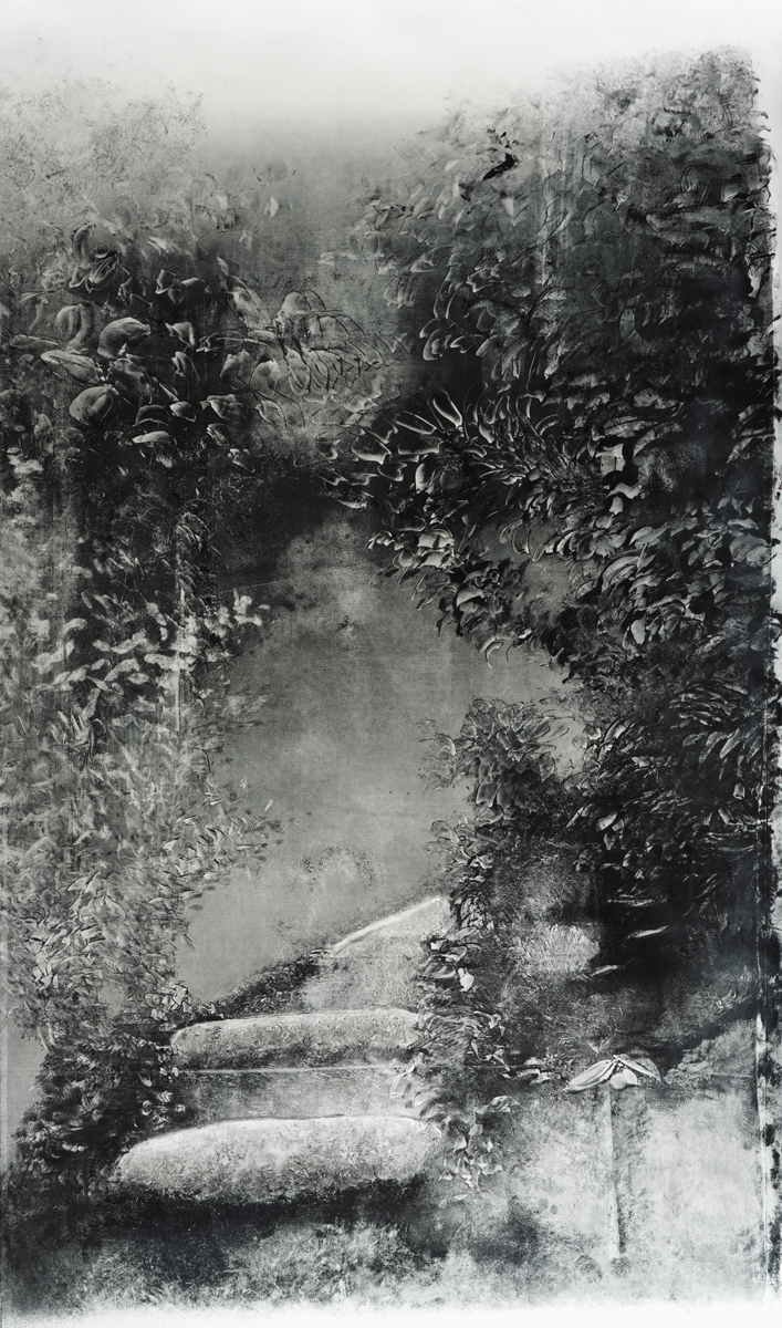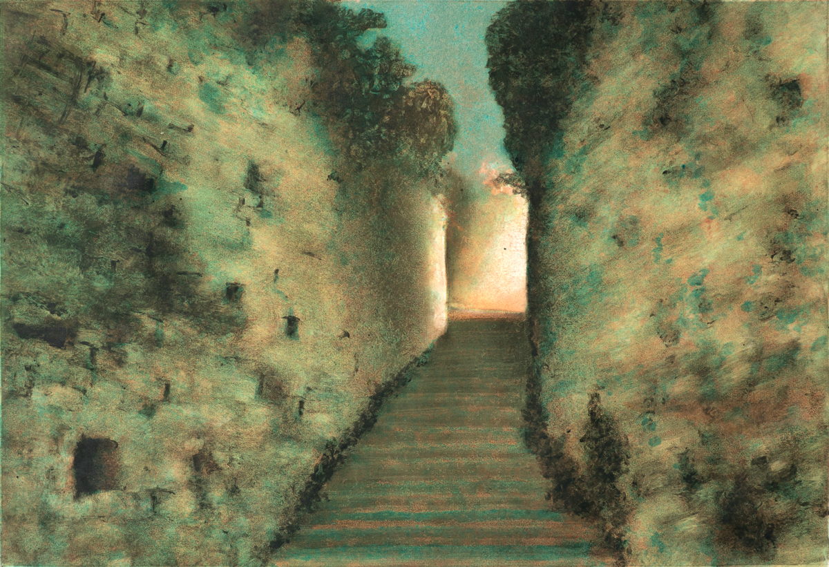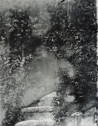 This spring as the 2025 Jerry Manson Resident at Flatbed Center for Contemporary Printmaking, I created a series of monotypes responding to my recent travels through Tuscany. Experiencing Italy for the first time, I found that even within the expansive, idyllic Tuscan landscape, humanity has left an indelible mark. Every parcel of land is cultivated, with valleys and hillsides turned to farmland. In contrast to my travels through Scandinavia, there is no right to roam. Every time I sought out nature, I found it behind a wall. Yet, while human history is entrenched in the land, with medieval and contemporary dwellings concealing Etruscan and Roman archaeological sites below, nature moves freely across them all, encrusting borders and eroding walls, subsuming the human narrative and becoming something more within the ruins of these civilizations. This series of monotypes explores the space that emerges when combining my memories and the layered histories of these sites with the will of the press.