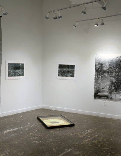 The overlaying of these buried histories inspired layering in my monotypes, with each layer amplifying or obscuring aspects of the previous version. As the passage of time compresses the layers of history into a new landscape, the pressure of the printmaking press combines layers of ink into a new vision of the landscape that is both natural and man-made.