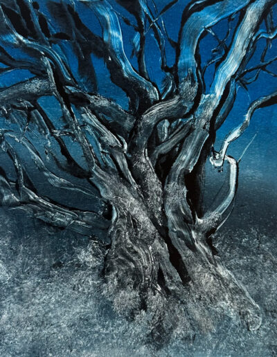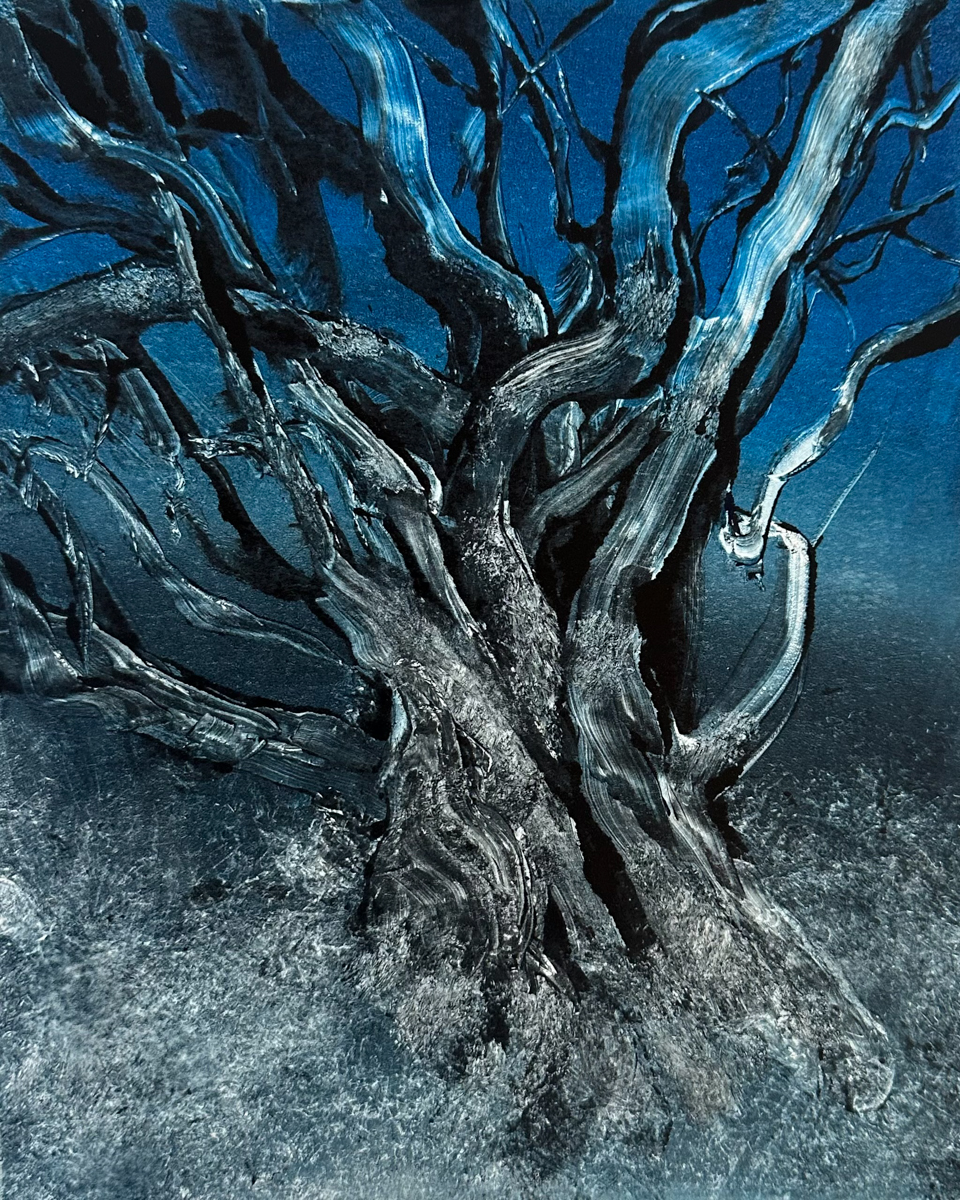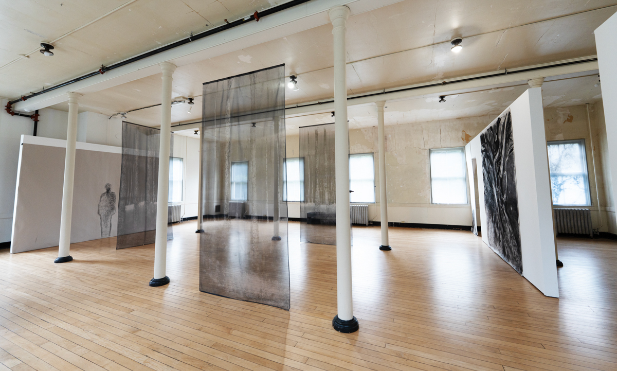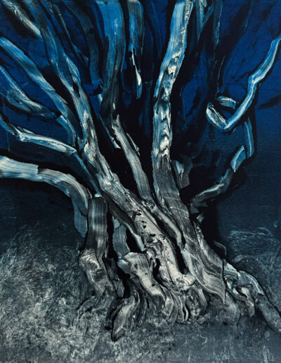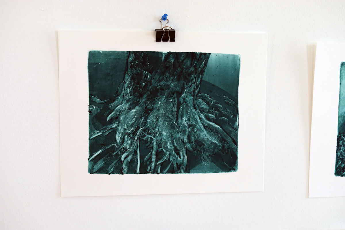 Colleen Blackard connects external and internal landscapes through monotype printmaking, drawing, and installation. Her artwork blends landscape and myth to create an otherworld for viewers to enter. As part of her process, she travels to remote sites and creates artwork to share her experiences of these places with the local community and abroad. Her installations envision humans as part of nature, belonging to the landscape, creating a space to contemplate this relationship.