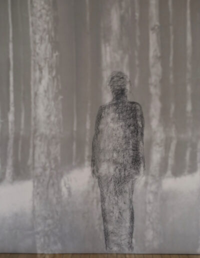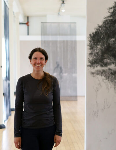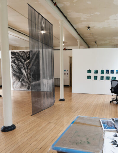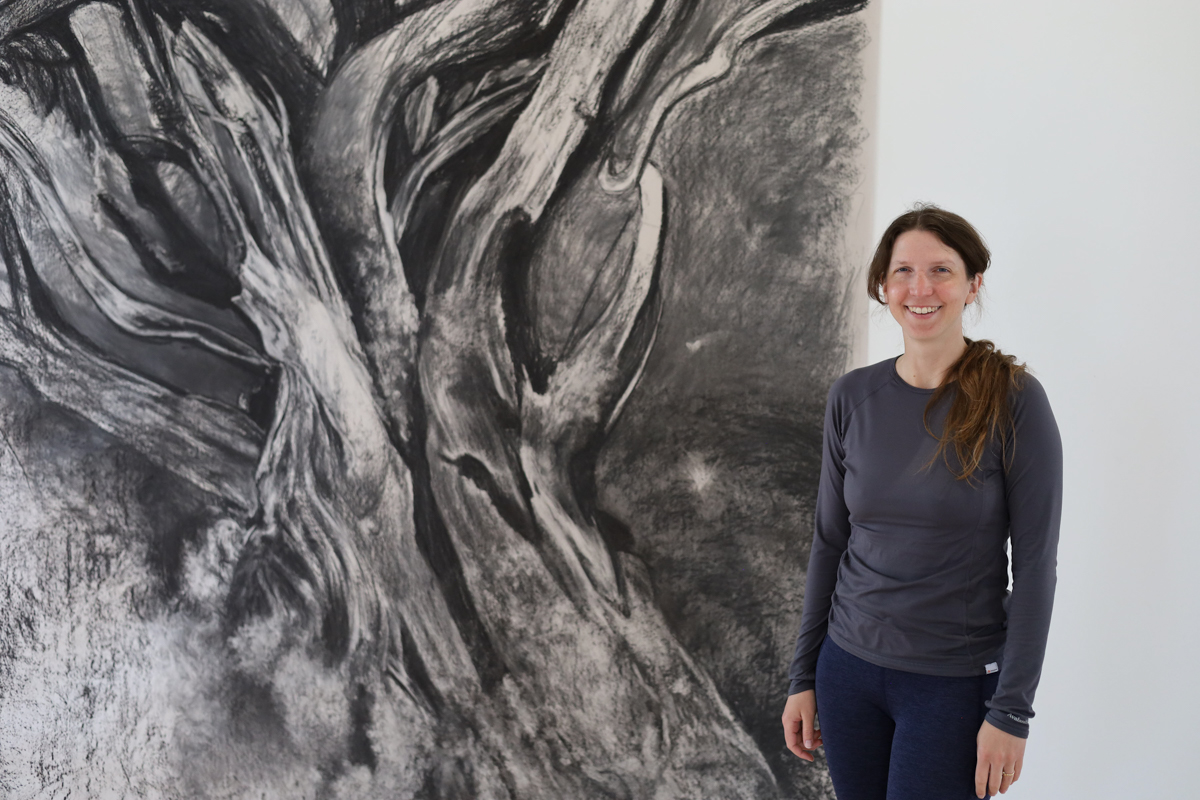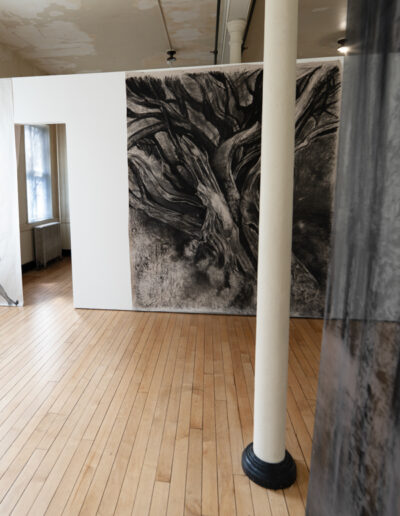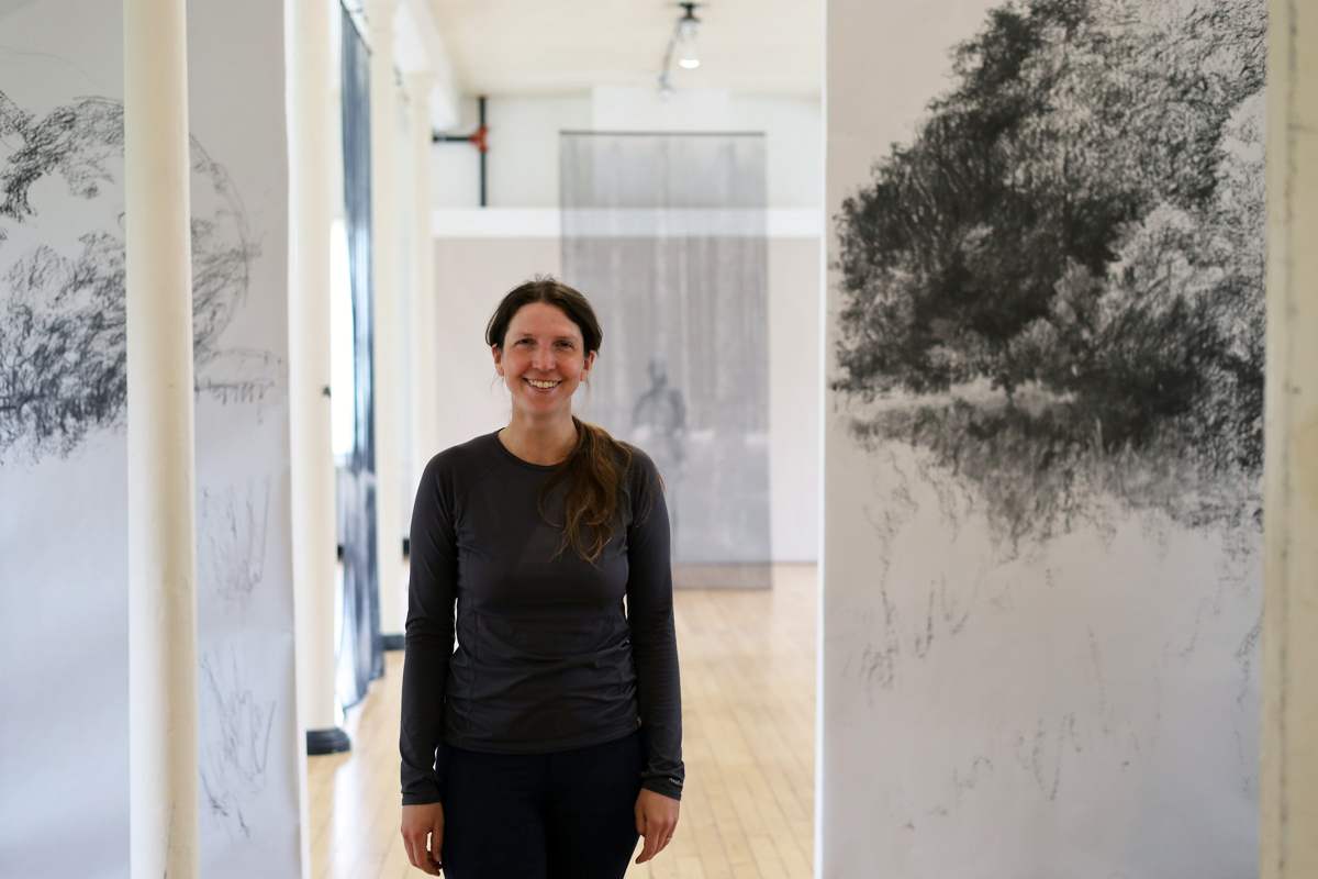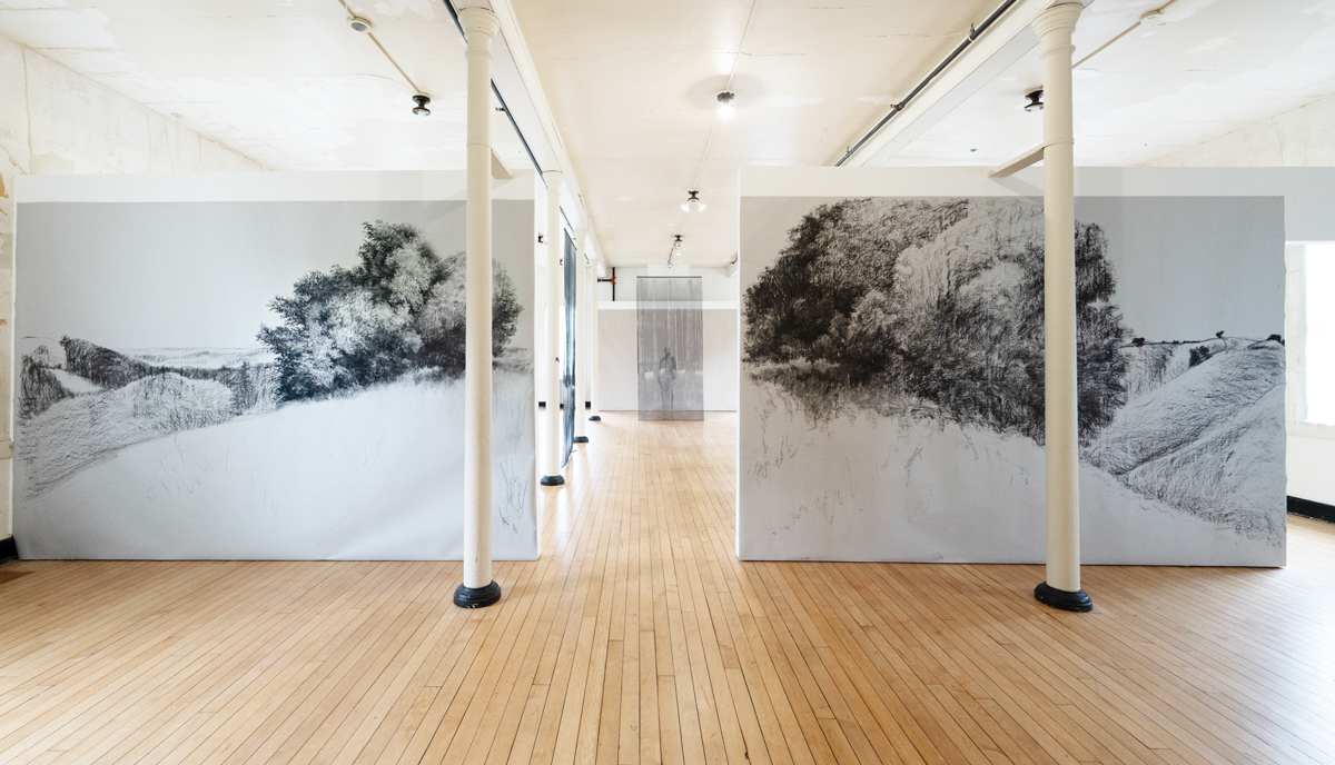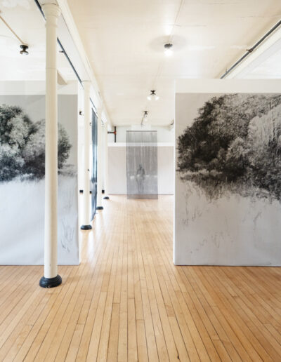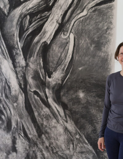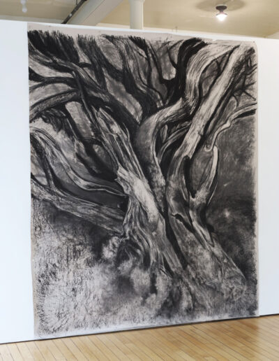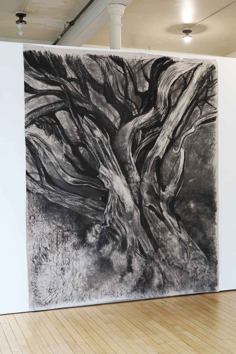 During her Project Space Residency, she will re-enter the Marin Headlands to search for a tree she met there as a child. Constantly battered by the wind and endlessly reappearing through rolling fog, it was slightly bent with its moss-covered roots anchored to the hillside. Its resilience inspired a sense of peace that anchors her to this day. She will also imagine this meeting from the tree’s perspective, contemplating the experience of a tree adapted to survive such a dramatic environment. Utilizing the studio as a canvas, she will build a living landscape of layered drawings and paintings to re-envision this memory, adding and subtracting elements throughout her stay, creating an otherworldly space of tree dreams and memories for viewers to enter.